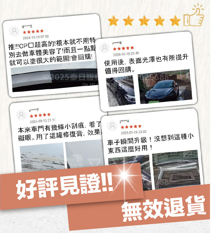 4.不可在車身還熱時操作,操作後,要將漆面完全擦拭乾淨。