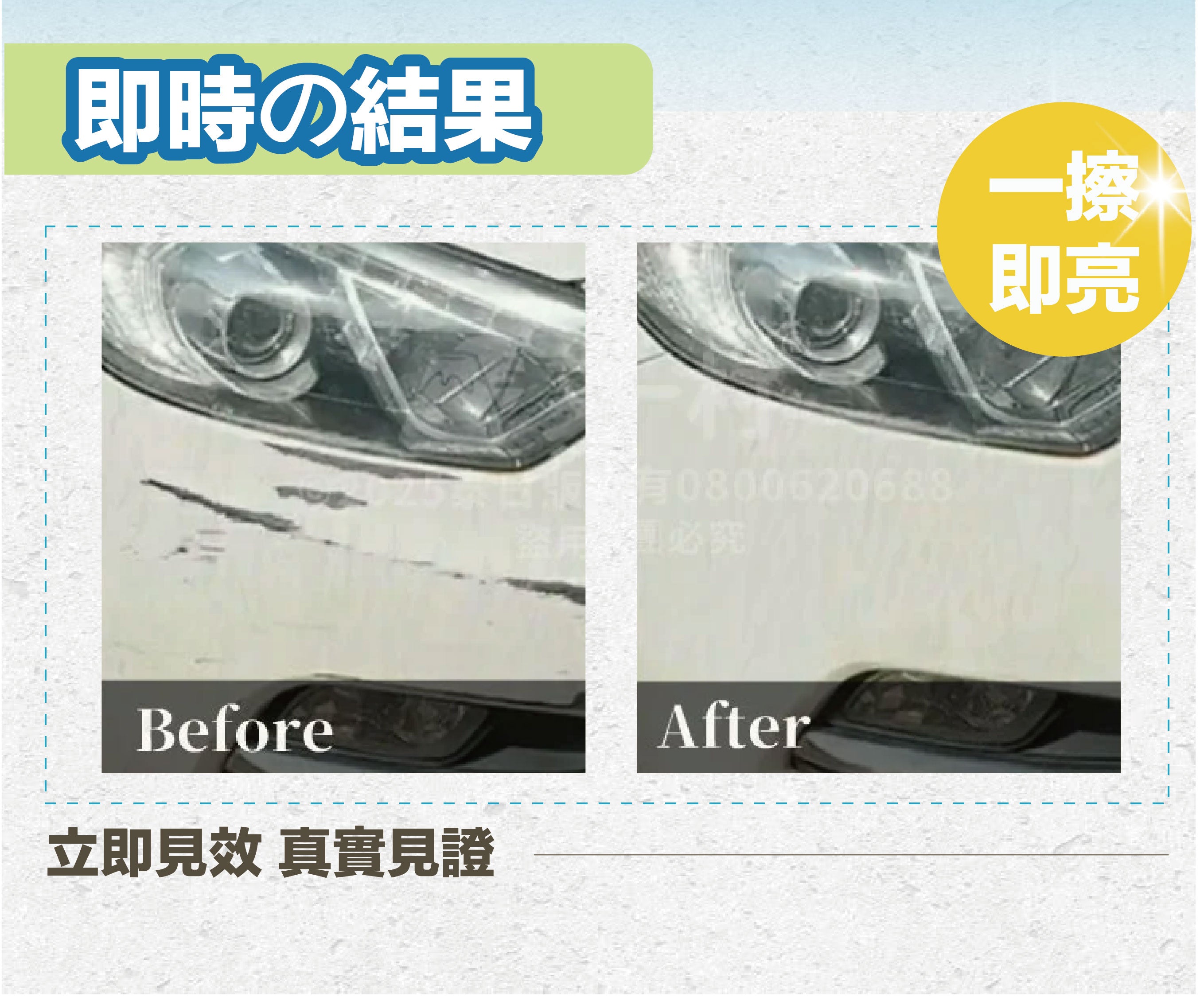 3.使用於深色車時,如果漆面上殘留有白色痕跡時,上蠟後即會消失。