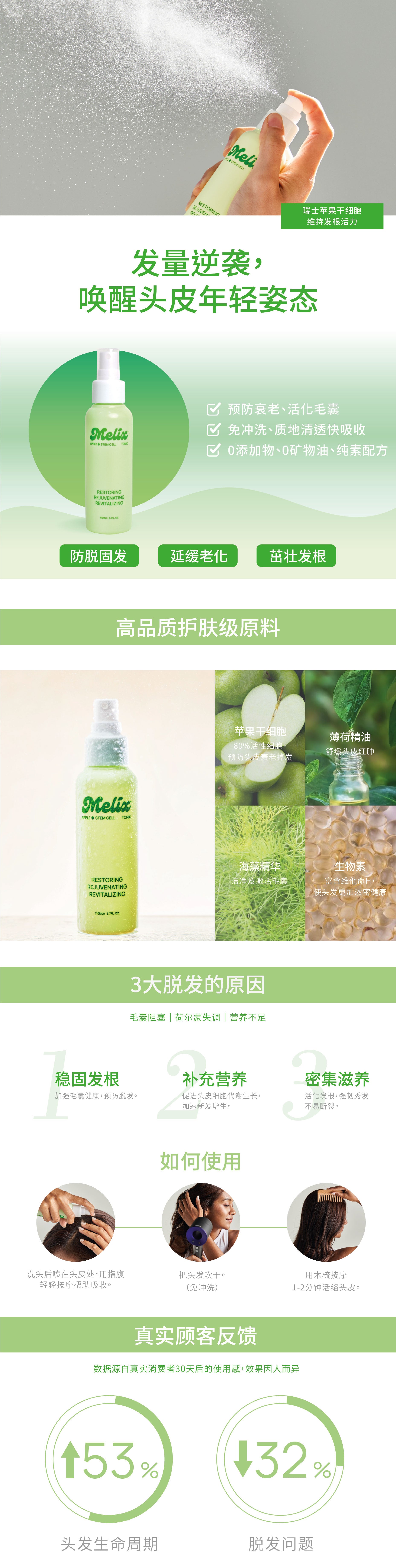 自从生了孩子就开始有掉发的情况,因缘巧合下认识了Melix这个救星,我才开始得救了😂如今过了这么多年,还是选择你 - Melix😚